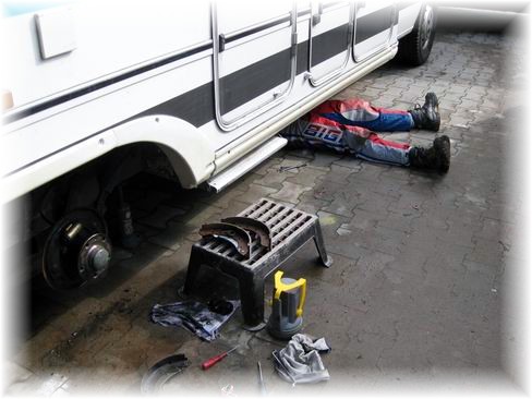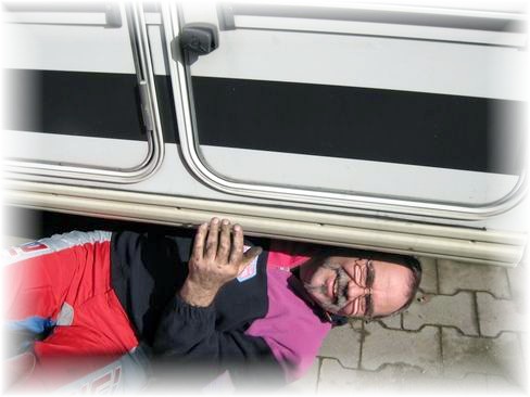 was isch den da los ?????? Trainingslager????????? unterm WoMo?????? nö...........aber ohne Bremsen nix nachhause......... | |