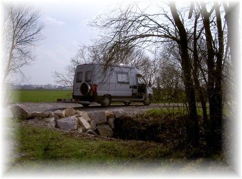 Italien 2006 neue Bewährungsprobe (bestanden) für unseren Soly, 40 Grad im Schatten hier bewährten sich die vielen Belüftungsmöglichkeiten, 3 Dachluken, große Schiebetür, 4 Ausstellfenster mit Einhandgriffmechanik und alles mit Moskitoschutz........