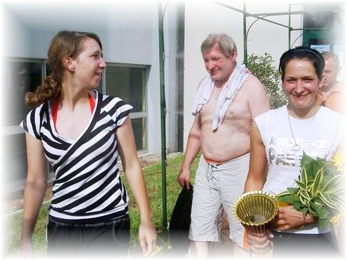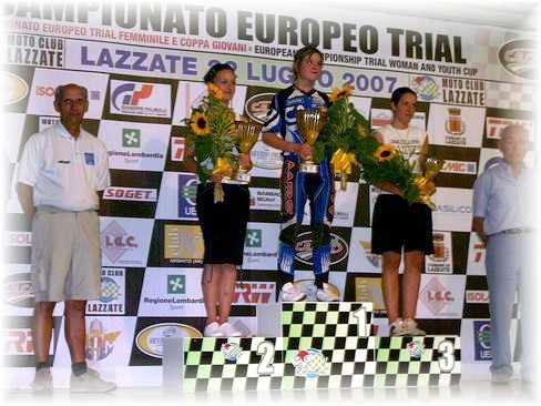 Siegerehrung...........und ich freude mich riesig über den 3. Platz bei der EM aufs Treppchen - eins meiner selbstgesteckten Ziele für 2007........in Lazzate Italien erreicht Danke an Alex die mich super betreute und motivierte, an Opa Gerhard für die perfekte Technik (pink power Sherco), den problemlosen Transport und die wie immer schmackhafte Verpflegung ("Biolek"), und an alle die sich mit mir über meinen Erfolg freuden und Glückwünsche nach der Siegerehrung aussprachen............... | |