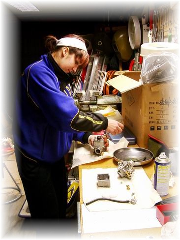 oh je, oh je jede Menge Teile Schwimmergehäuse, Schieber, Düsenstock, Leerlaufdüse, Hauptdüse, Starterdüse, Schwimmerventil, Luftschraube..... doch alles perfekt zusammengebaut zwei mal gekickt und die Sherco "blubberte" zufrieden vor sich hin.............. Opa Gerhard war sichtlich stolz auf meine Mechanikerinnenqualitäten