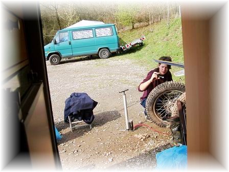 Es war toll, schade das wir heute (Ostermontag bei Sonnenschein) mit unserem genialen Trialbus der sich als "Schlafzimmer mit Küche,Bad und WC" bestens bewährte, nachhause fahren. ich glaub auf dem Bild träume ich auch schon vom nächsten Trainingscamp............................. |